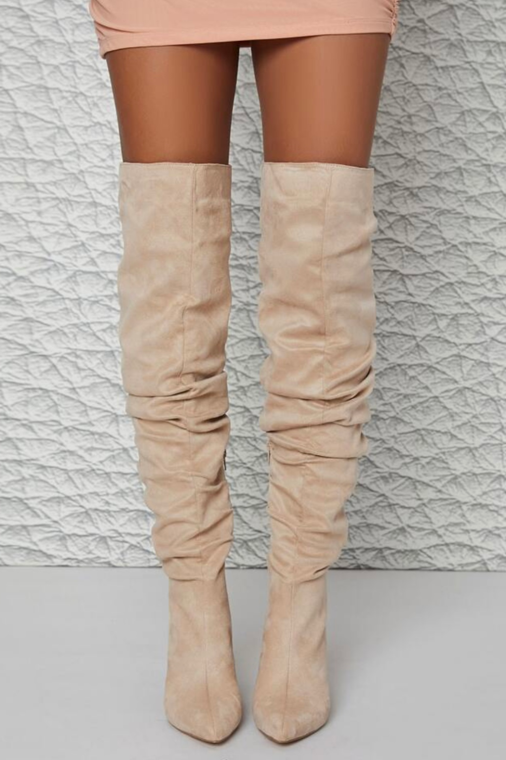 Botas Corugadas en taco 11 cm confeccionadas en biocuero, un material resistente en piel de durazno.
